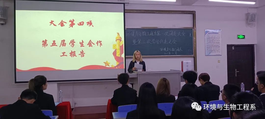 展望未来工作,任重而道远,为使得员工工作更加出色,员工素质进一步提高,我系于11月7日下午在二教131召开环境与生物工程系第一次团员代表大会暨第二次员工代表大会。我系刘承博老师及员工团员代表一百余人参加。大会开幕,全体教师和同学用嘹亮的嗓音严肃而又庄严的演唱国歌。