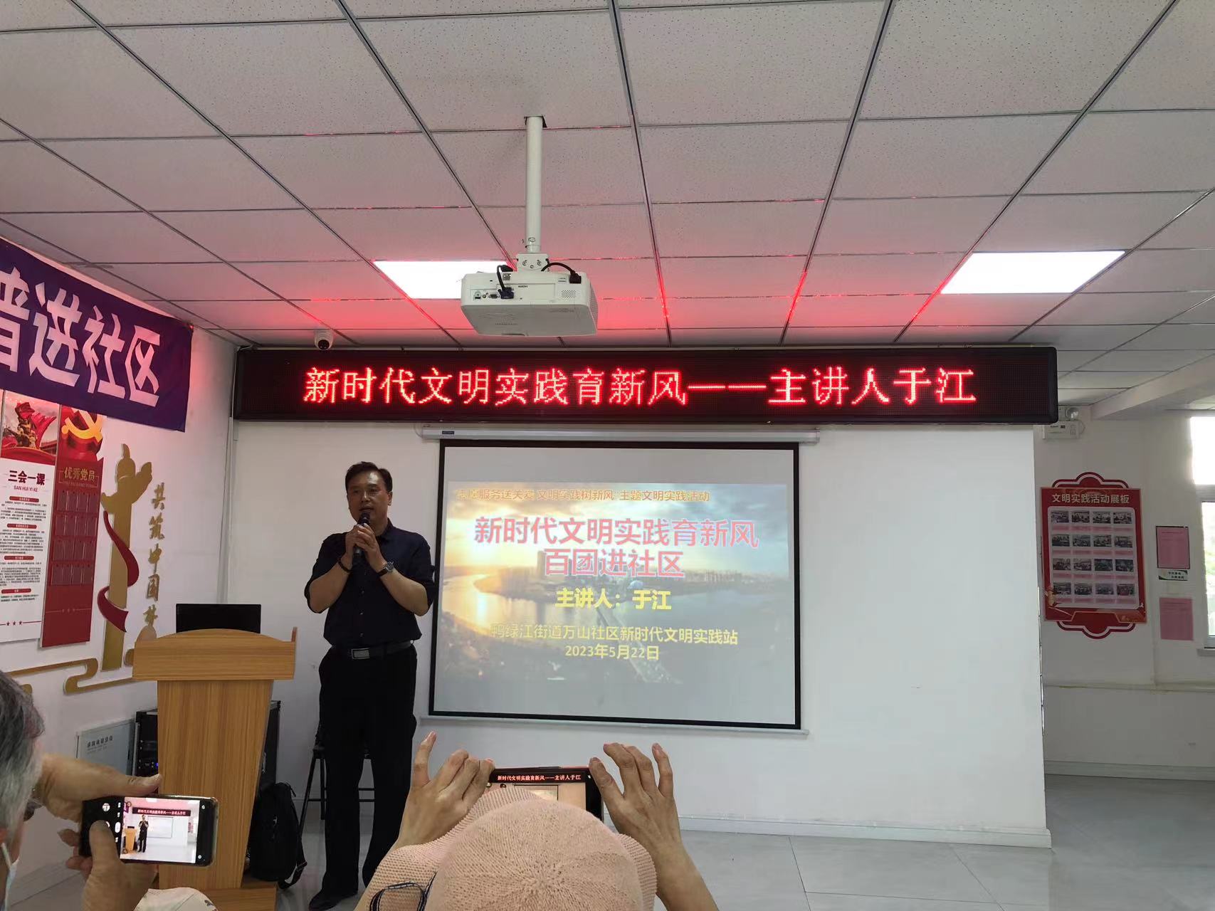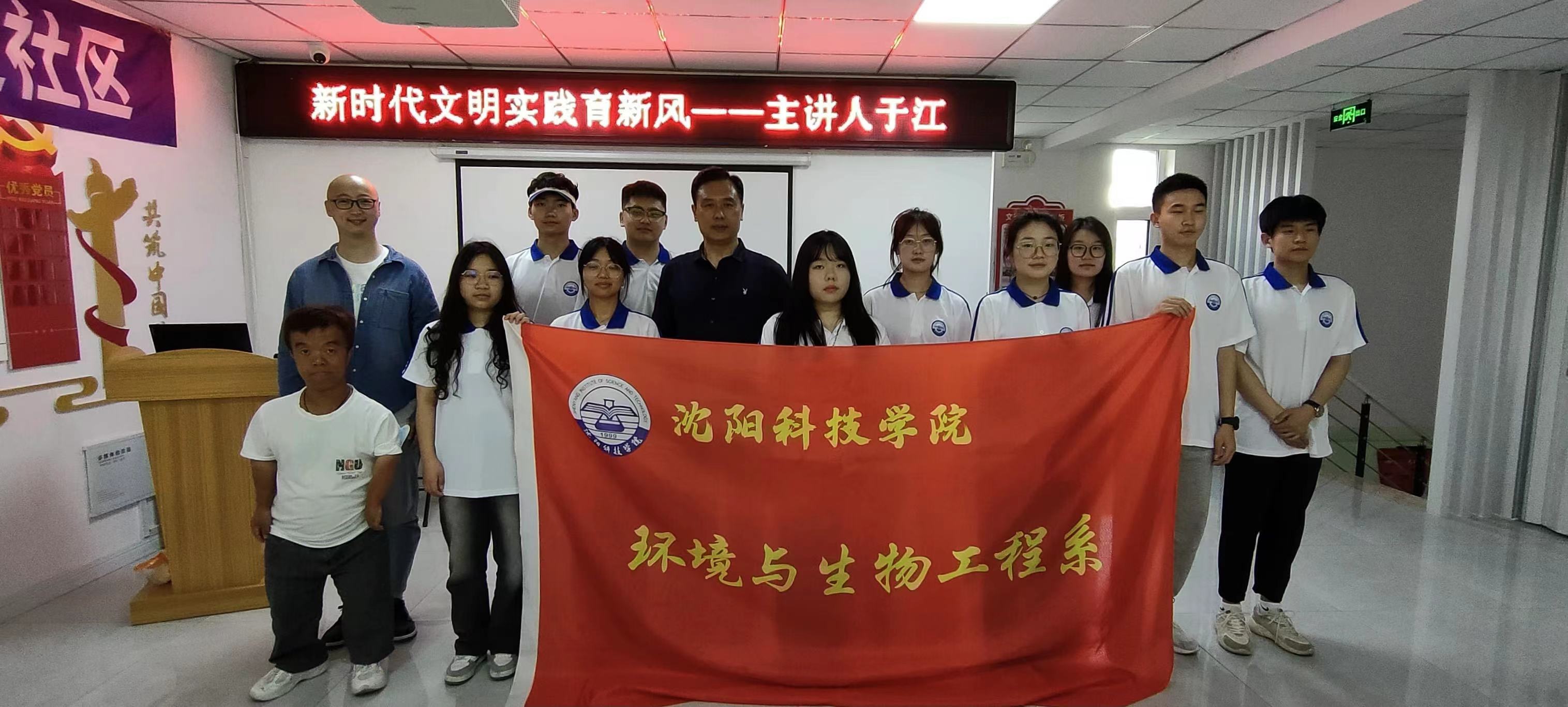 2023年5月23日,永利yl23411环境与生物工程系志愿者员工干部在鸭绿江街道万山社区新时代文明实践站参加了一场主题为“志愿服务送关爱 文明时间树新风”新时代文明实践育新风百团进社区的文明实践活动。活动由FM104.5沈阳新闻广播《市民您早》节目主播于江老师作为主讲人,旨在通过志愿服务的形式,传递关爱、文明和环保的理念,提高社区居民的生活质量。