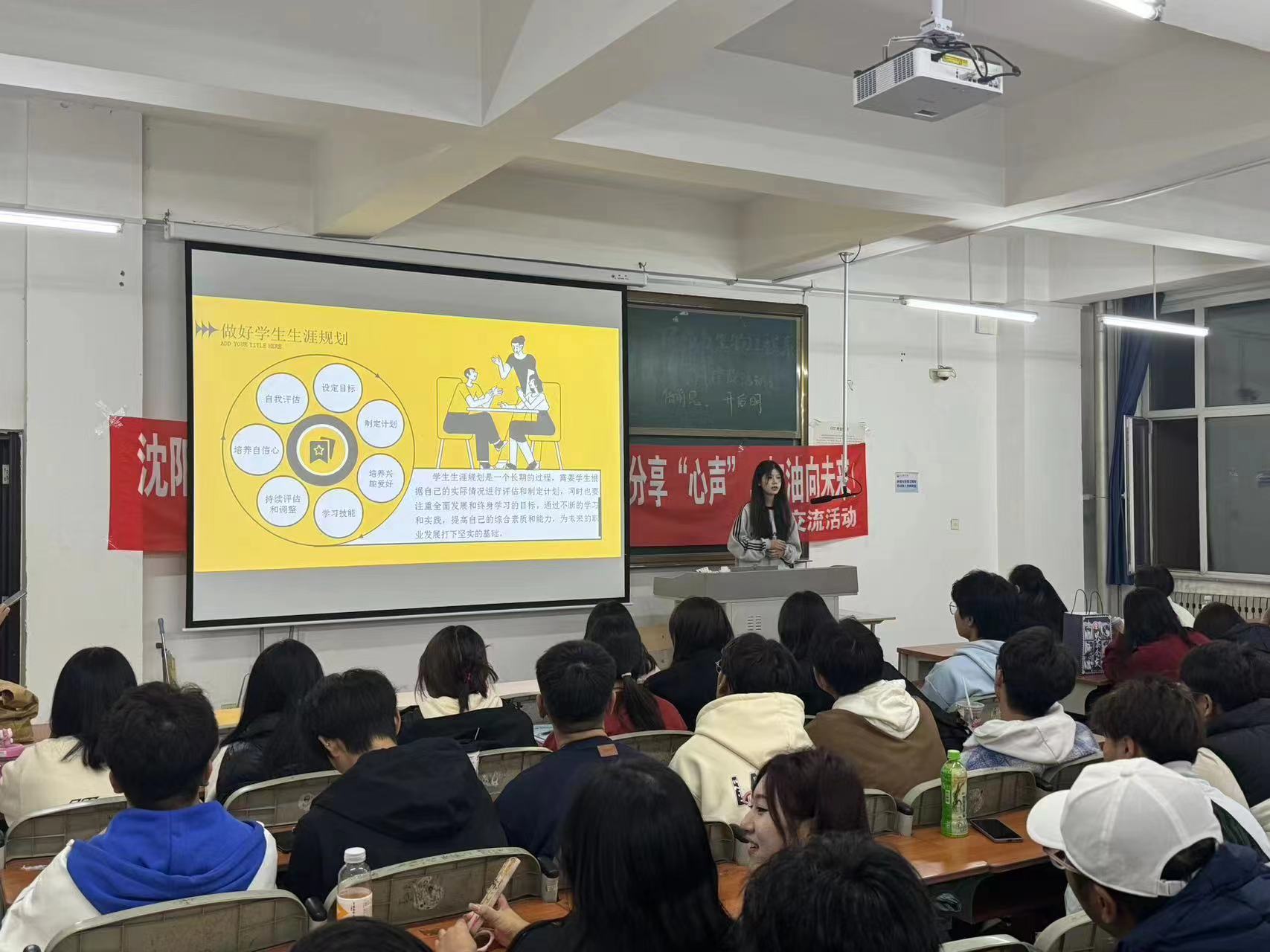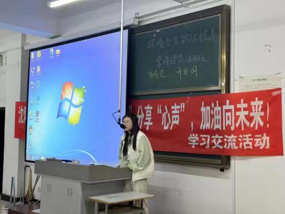 为了培养优良的学风,营造有利于老员工社会化的精神环境。环境与生物工程系于2023年10月29日在第一教学楼202教室开展学风建设活动。本次活动邀请有辅导员李倩老师,程雅萍、乔蕾和蔚欣瑶三位学姐。由三位学姐为我们分享学习经验,为学风建设进行发言。