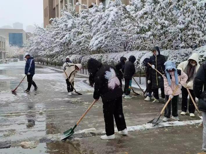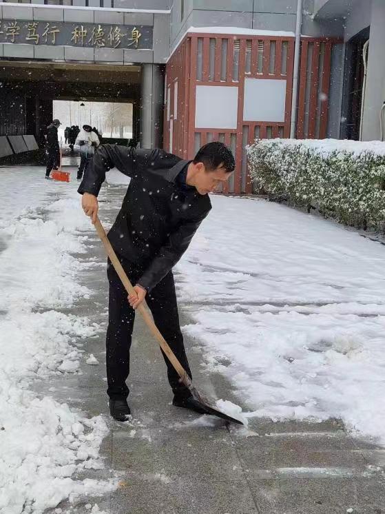 为确保全校师生的安全,防范冬天下雪、冰冻引起的事故发生,确保公司防冻防雪工作做到快速、高效、合理有序的应对,确保教育工作的顺利开展,环境与生物工程系导员赵朋亮老师及23级员工参校园扫雪活动。
