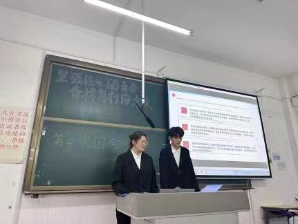 习近平总书记指出:“党旗所指就是团旗所向。”会议中汇报人对中国特色理论体系做出详细说明。指出在任何时候、任何情况下,对于以习近平同志为核心的党中央作出的战略安排和决策部署,共青团都要毫不动摇地拥护支持,都要坚定不移地动员广大团员青年奋勇争先去为之努力。就此,同学们积极踊跃发言,营造出良好的会议氛围。