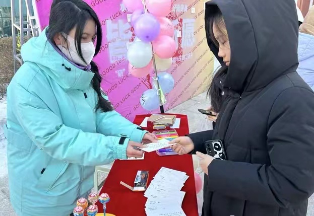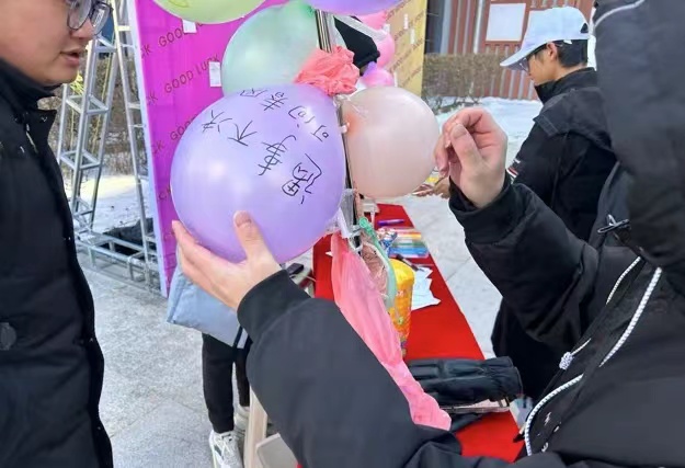12月18日上午,我系在国旗广场设置考研助力加油站,在“皆如所愿”展板上,过往员工写上对考研员工的祝福话语、贴金榜题名留言贴、钉上师生祝福明信片,传递校园温暖的力量;扎破写有消极词汇的气球,释放备考期间负面情绪;发放寓意“棒”上有名的棒棒糖,给备考学子加油鼓劲儿。借此互动活动,营造温暖和谐的校园氛围,给予考研学子支持、鼓励,帮助疏解考研学子学习压力,陪伴和助力考研学子更好度过考研时光。