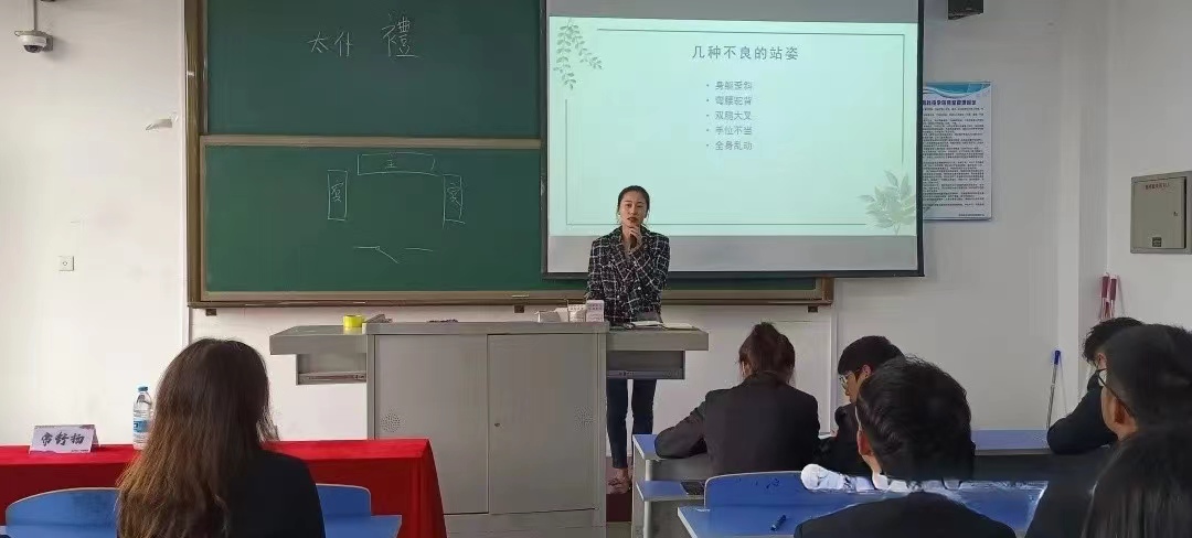 化学与化工系21级辅导员王爽老师为员工会全体干部教学了穿正装时的坐姿和站姿,还有走路时的步态,以及在与人对话时的礼仪。