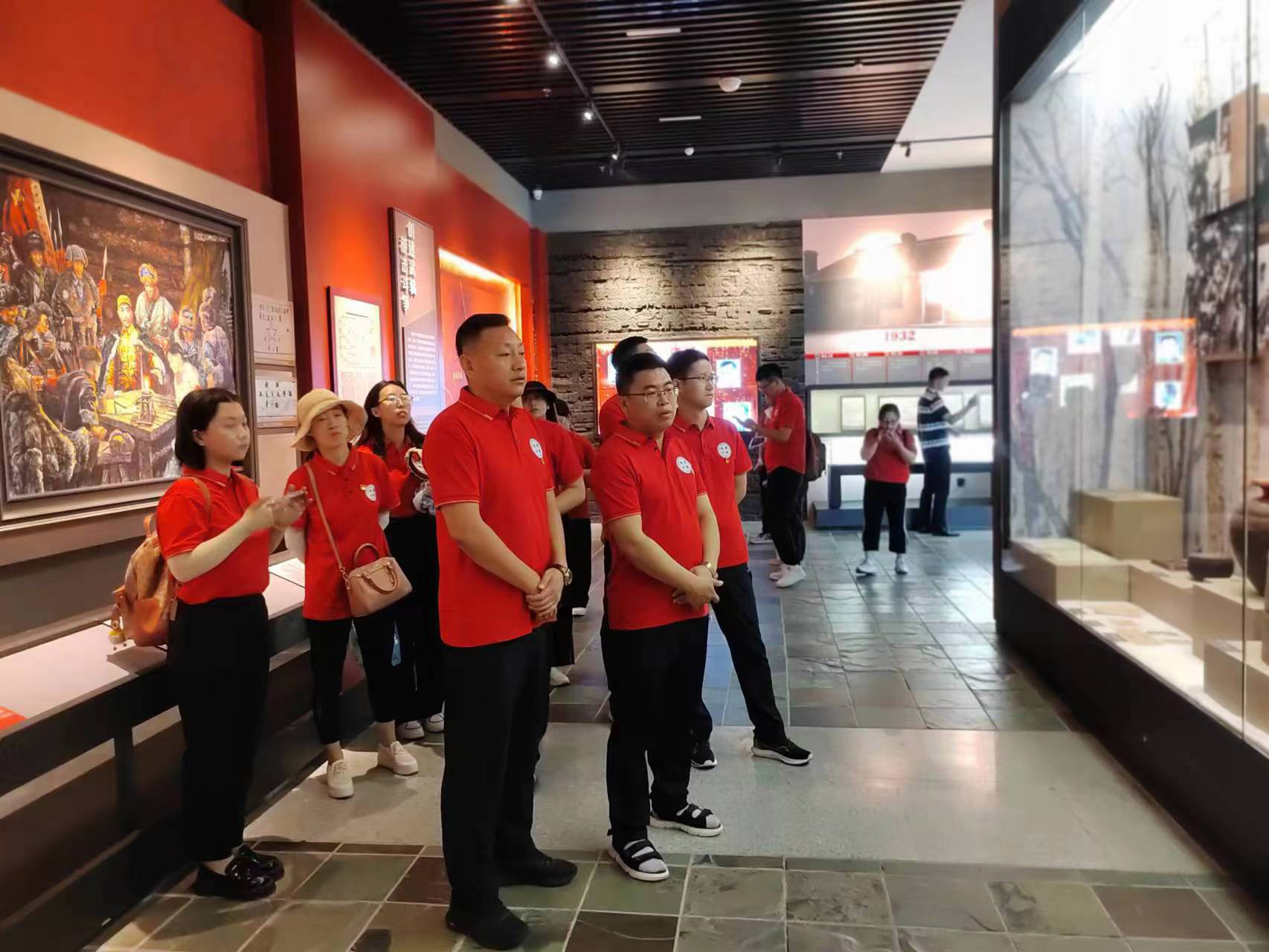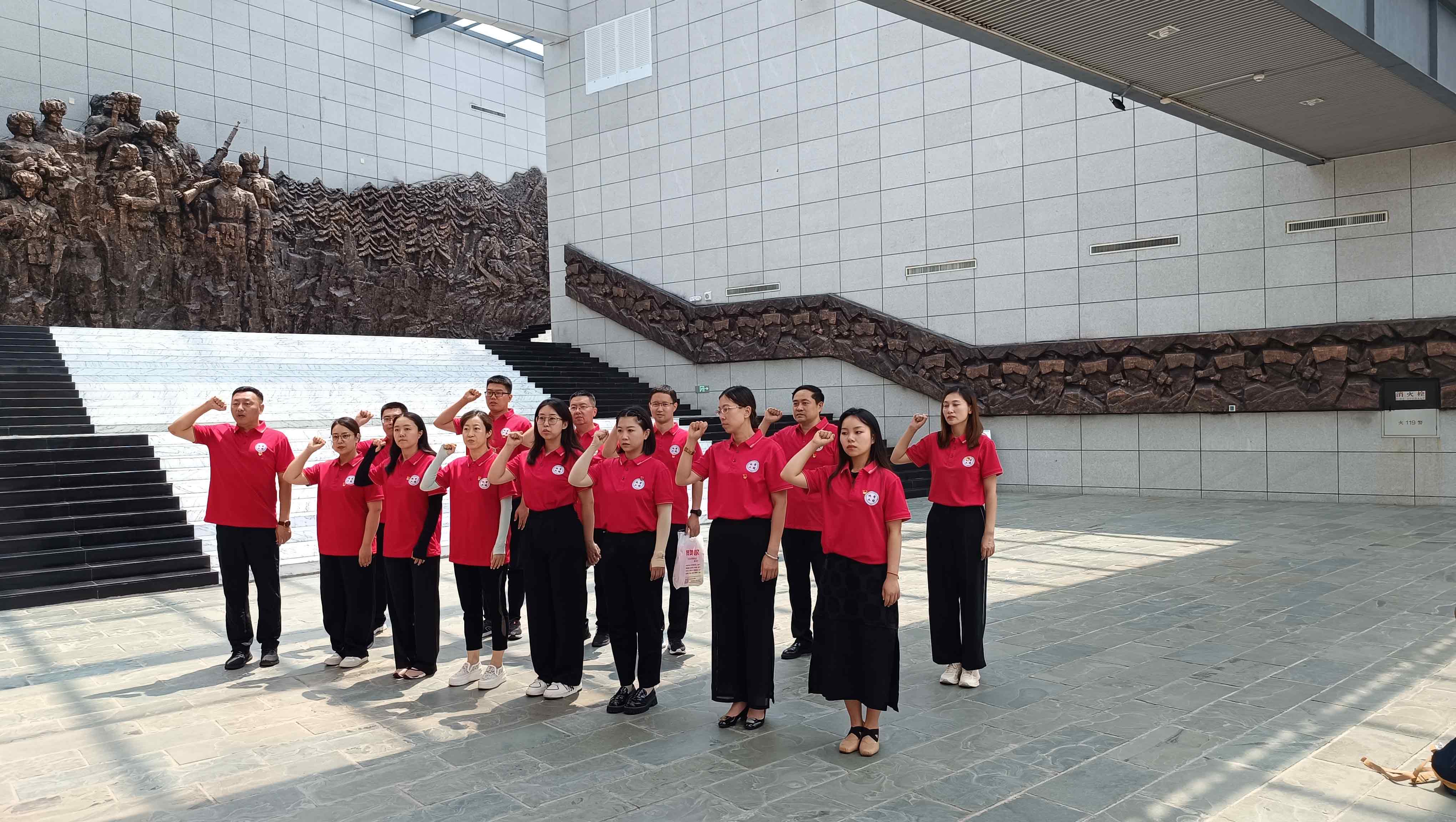在观展后,在党总支书记都颖同志的带领下,全体党员来到陈列馆正厅前,面对着鲜红的党旗,重温入党誓词。铿锵的誓词,坚定的承诺,让每一位党员的心灵再次受到洗礼。