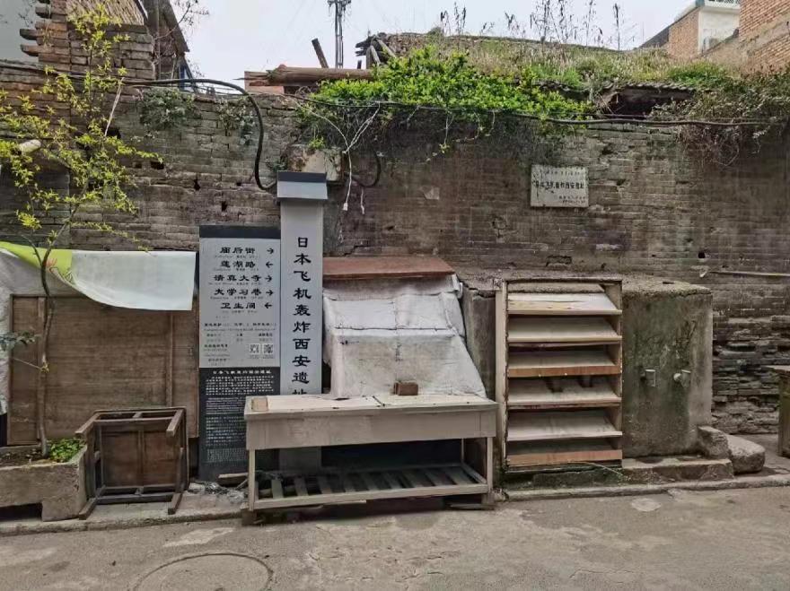 7月23日,团队全体成员首先前往西安日本飞机轰炸遗址进行参观学习。1938年11月23日,日军出动飞机轰炸了西安城,老房子曾受到过重创,不但损毁近半数木作饰品,墙上还留下轰炸后的痕迹。