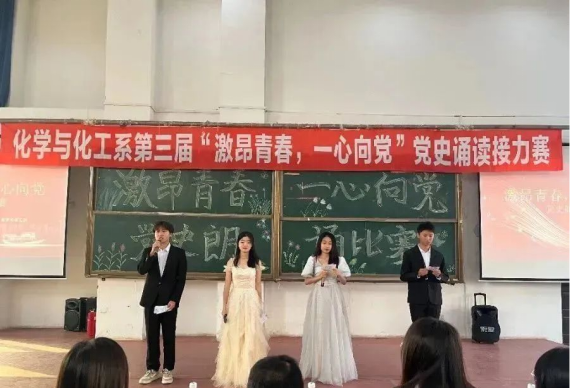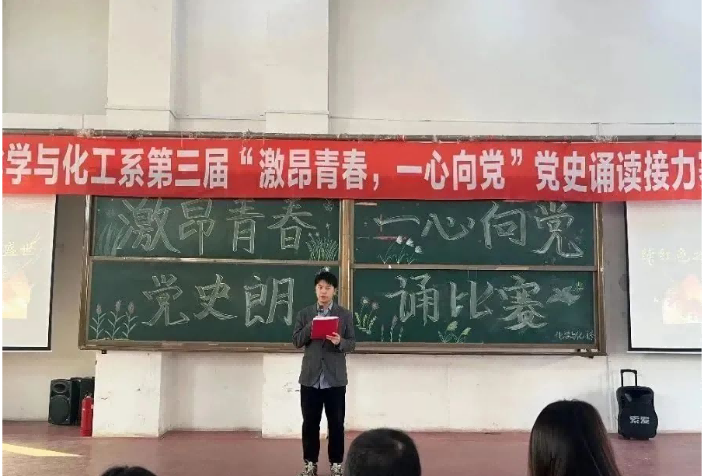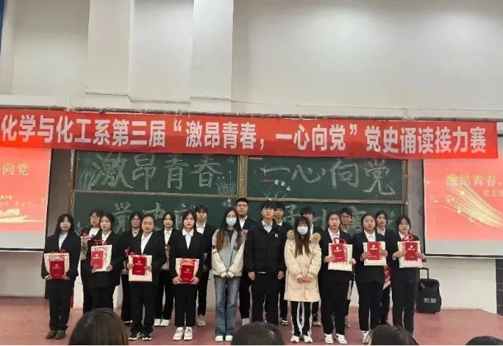 “永远跟党走,奋进新时代”。一百年来,无数仁人志士前仆后继,不怕牺牲,艰苦奋斗,为中国人民谋幸福,为中华民族谋复兴。百年征程波澜壮阔,百年初心历久弥坚。诵读国学经典,品味华夏文明;展示自我风采,弘扬民族气概;化学与化工系分团委员工会组织部于2023年11月15日组织举办了第三届“激昂青春,一心向党”党史朗诵大赛。