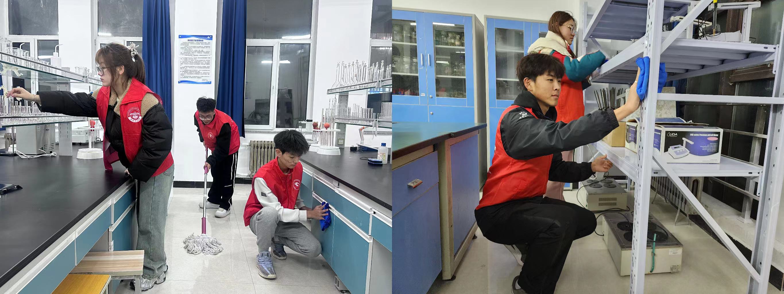 同学们秉承不放过一粒灰、不留下一粒尘的理念以及向雷锋同志学习,不怕吃苦、不怕困难的精神将整个实验室清扫工作进行的井然有序。