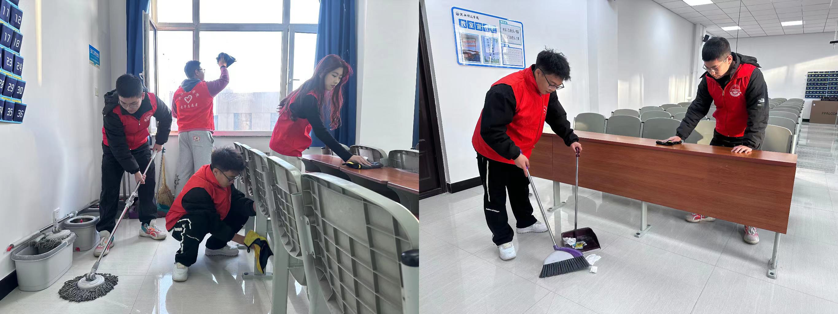 我系学子经过如火如荼的清扫,充分发挥了不惧辛苦、服务他人的雷锋精神,使教室变得宽敞明亮,同时也为员工们营造了一个更加干净卫生、和谐有序的学习与生活环境。
