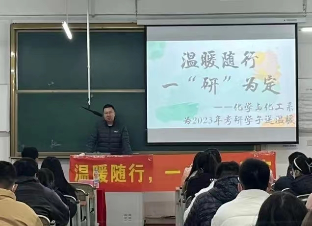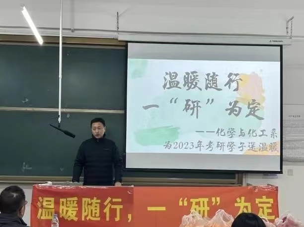 在2022届考研倒计时的最后阶段,为帮助我系考研学子坚定目标、调整心态增强备考信心,助力考生成功上岸,化学与化工系于12月7日在一教402教室开展了“温暖随行,一研为定”主题考研送温暖活动。