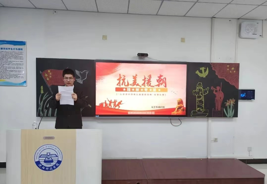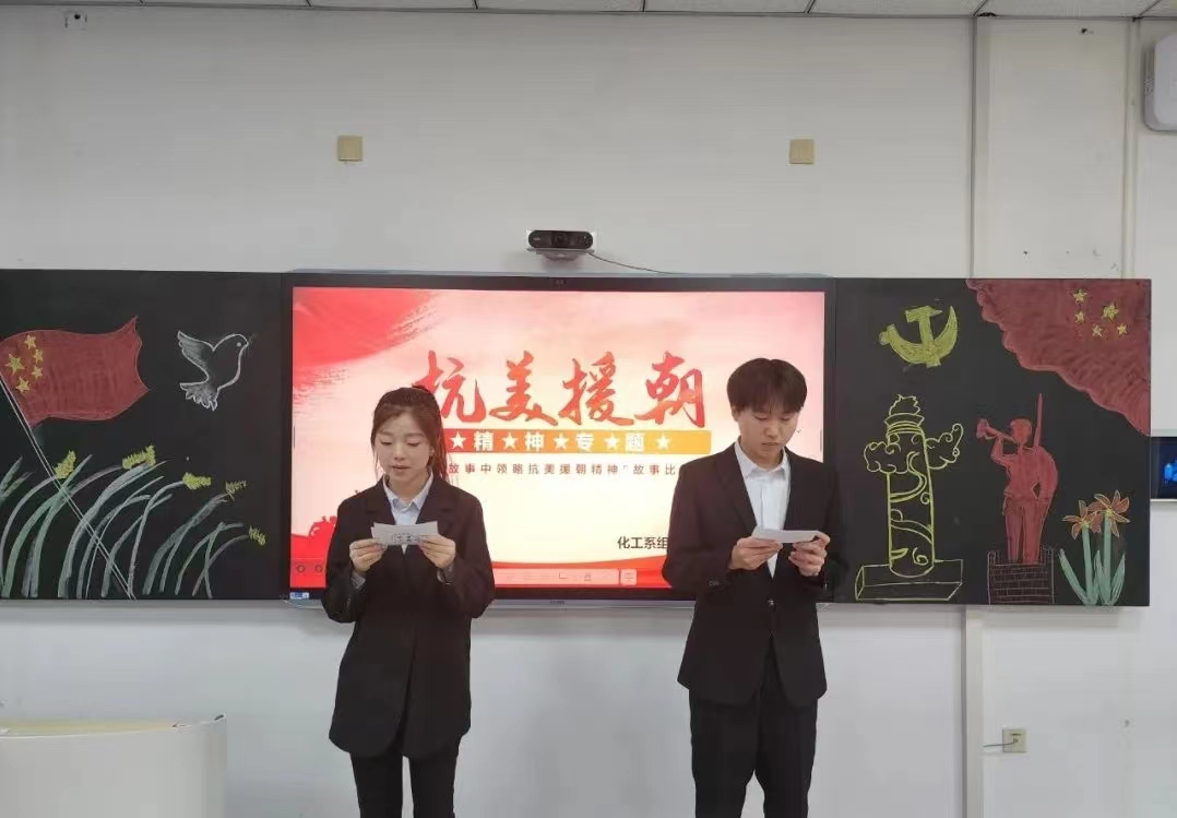 红色征途路漫漫。点点滴滴润心间,为激发员工爱国热情,增强民族凝聚力,引导员工学习、践行抗美援朝英雄忠于祖国、英勇顽强、不怕困难的精神,发扬红色精神。汲取红色营养。用红色文化涵养正气。用优良传统滋养人心。用好红色资源。讲好红色故事,化学与化工系分团委员工会组织部组织举办了以“从故事中领略抗美援朝精神”为主题的抗美援朝故事会活动。