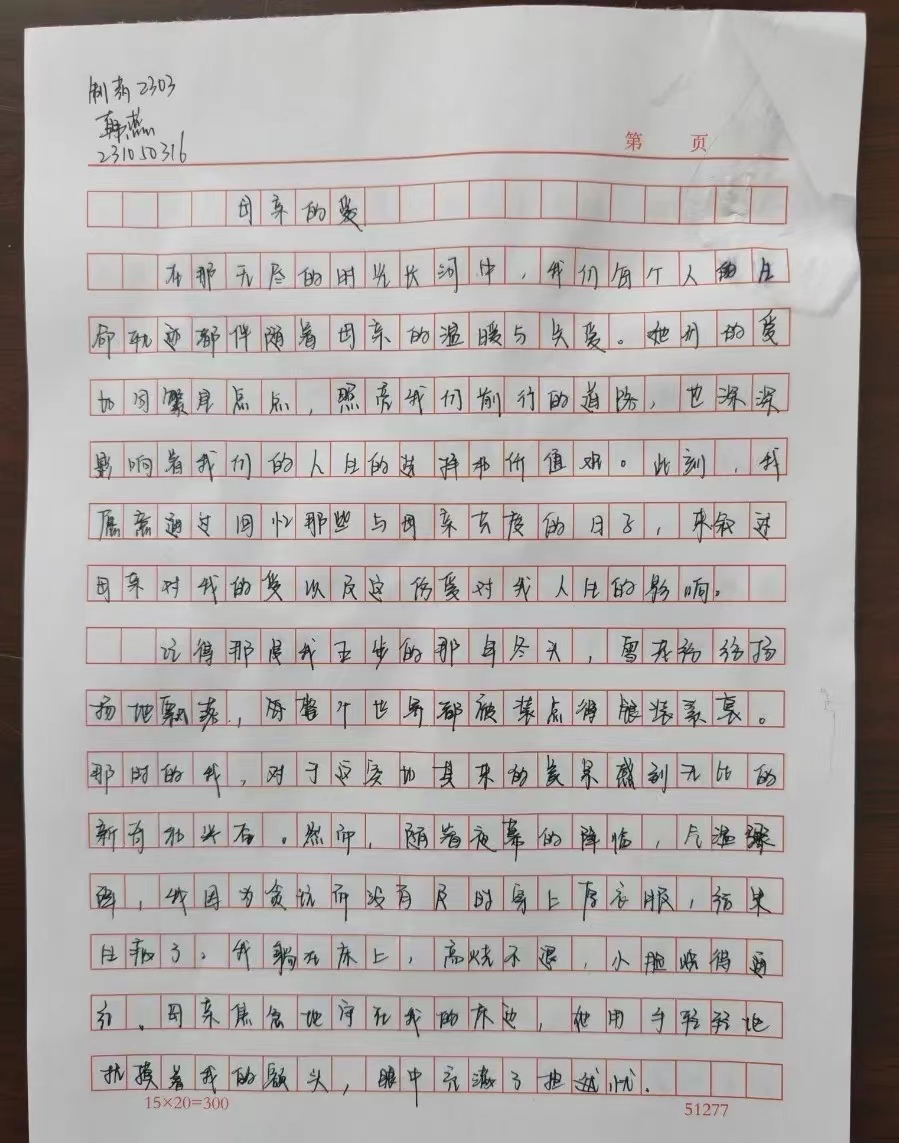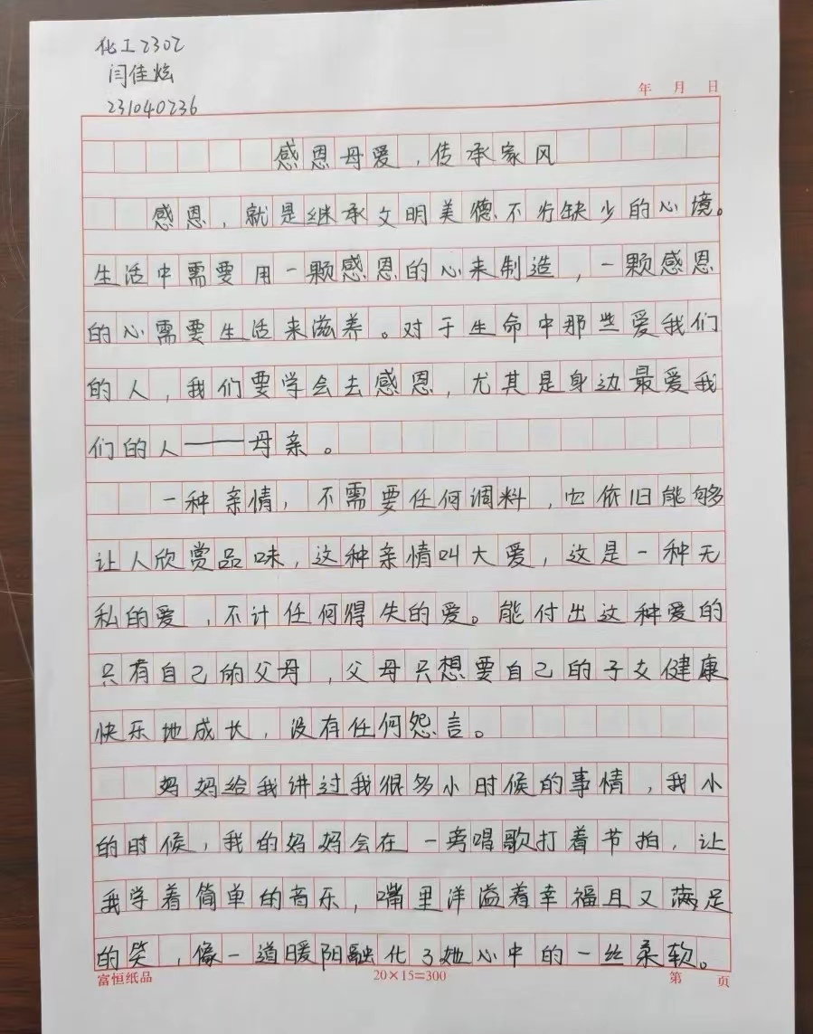 围绕“以岁月温情,赠母爱深沉”主题,同学们积极收集素材、构思排版,呈现了一幅幅主题鲜明、内容丰富、色彩明丽的精美手抄报。每一份作品都充分体现了化学与化工系学子的想象力和创造力,饱含着对母亲深深的爱意和感激。