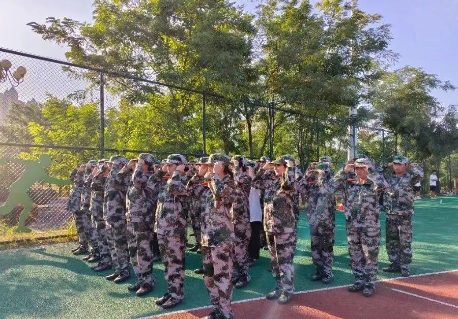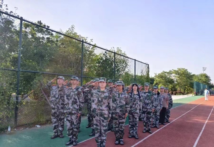 一遍遍练习着敬礼的动作。他们站得笔直,双手紧贴裤缝,眼神中透露出对这项仪式的尊重与庄重。随着教官的一声令下,员工们迅速抬起右手,五指并拢,中指微接帽檐右角前约2厘米处,掌心向下,向外张约20度。每一个动作都力求精准到位,每一次敬礼都饱含着对祖国的热爱与忠诚。军训是校园生活的序章,是心灵的淬炼与洗礼,是自我的挑战与超越。少年热血肆意生长,属化工学子的青春故事还在继续,迈向荣耀征程的精神仍在激励着他们不断前行。