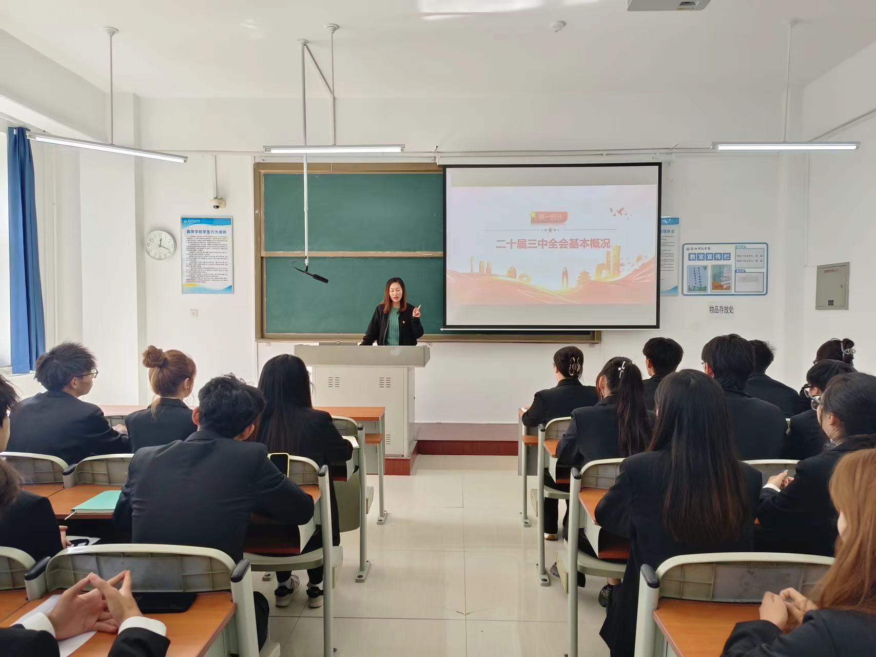 9月25日,化学与化工系党总支第一党支部于公司一教206教室开展学习贯彻党的二十届三中全会精神专题党课。第一党支部书记王爽以“深入学习贯彻党的二十届三中全会精神,砥砺奋进普新篇”为题,为第一党支部在校员工党员、分团委员工会干部作专题宣讲。为全系党员教师作专题宣讲。