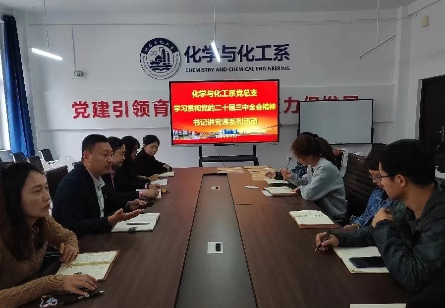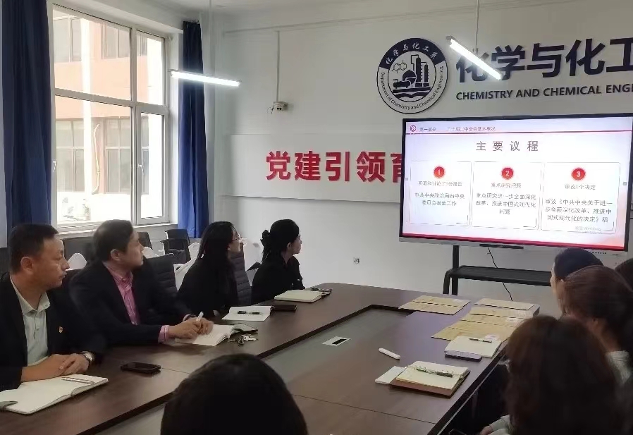 9月20日,化学与化工系党总支举行学习贯彻党的二十届三中全会精神专题党课。第二党支部书记、系副主任单译以“深入学习贯彻党的二十届三中全会精神,以进一步全面深化改革开辟中国式现代化广阔前景”为题,为全系党员教师作专题宣讲。总支书记都颖主持专题党课。