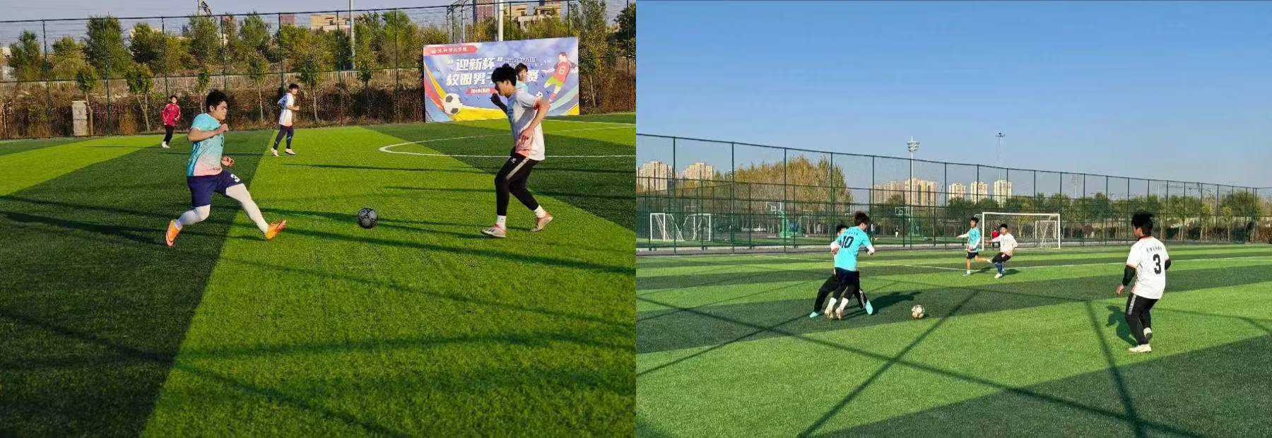 汗水、奔跑、配合、射门、呐喊,化工学子们奋力奔跑在绿茵场上,用热情点燃青春,用运动追逐梦想。每场比赛都充满了紧张与刺激,双方球员怀揣着对足球的热爱与尊重,展开激烈的争夺。传球、突破、防守、射门……球员们都以精准的脚法,巧妙的配合,打破对方的防线,呈现出一场场精彩的比赛,让青春在绿茵场上飞扬。