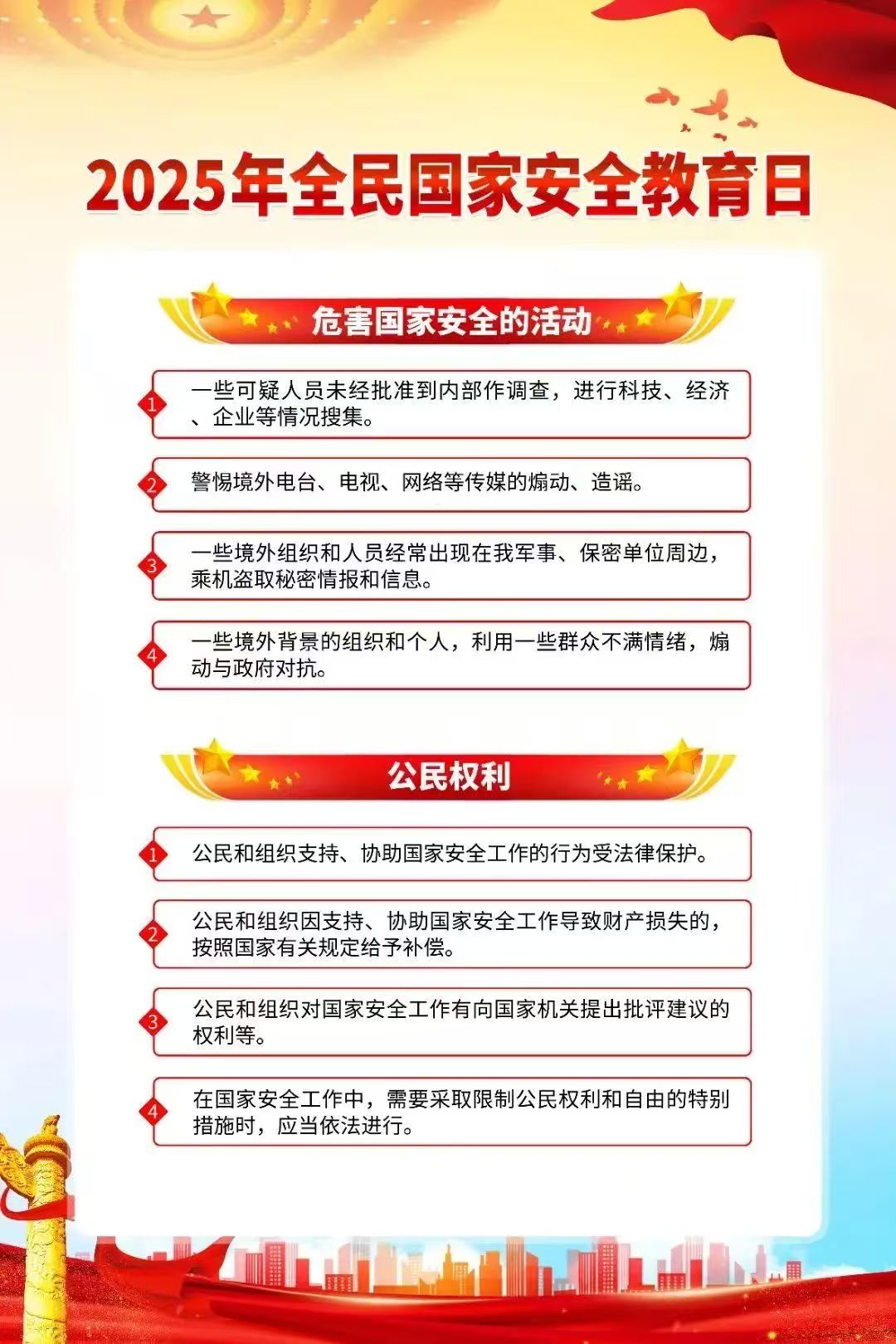 国家安全,是国家生存发展的基石,是人民幸福安康的前提。它涵盖政治、军事、国土、经济、文化、社会、科技、网络、粮食、生态、资源、核、海外利益、太空、深海、极地等诸多领域,与我们每个人的生活息息相关。小到个人信息保护、网络安全防范,大到国家主权维护、领土完整守护,都是国家安全的重要组成部分。