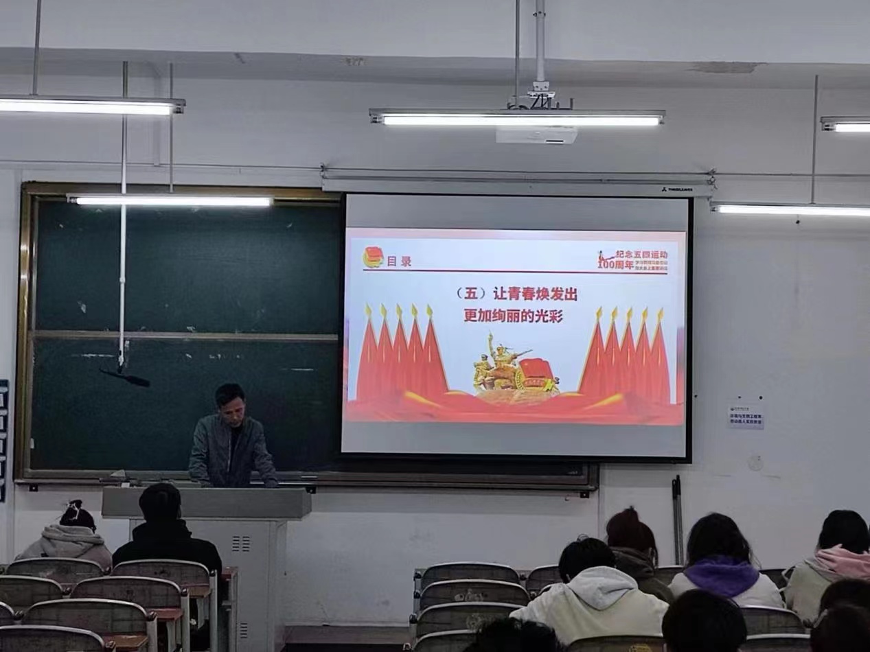 今年是五四运动104周年为了全面提高员工对党的了解,增强员工热爱党的情怀,坚定同学永远跟党走的理念,明确作为当代的一名共青团员及老员工的职责和使命。环境与生物工程系于2023年4月27日在一教206教室展开积极分子理论学习会议,由环境与生物工程系党支部书记赵老师为大家讲述了“学习贯彻习近平总书记在纪念五四运动100周年大会上的重要讲话”积极分子培训课。