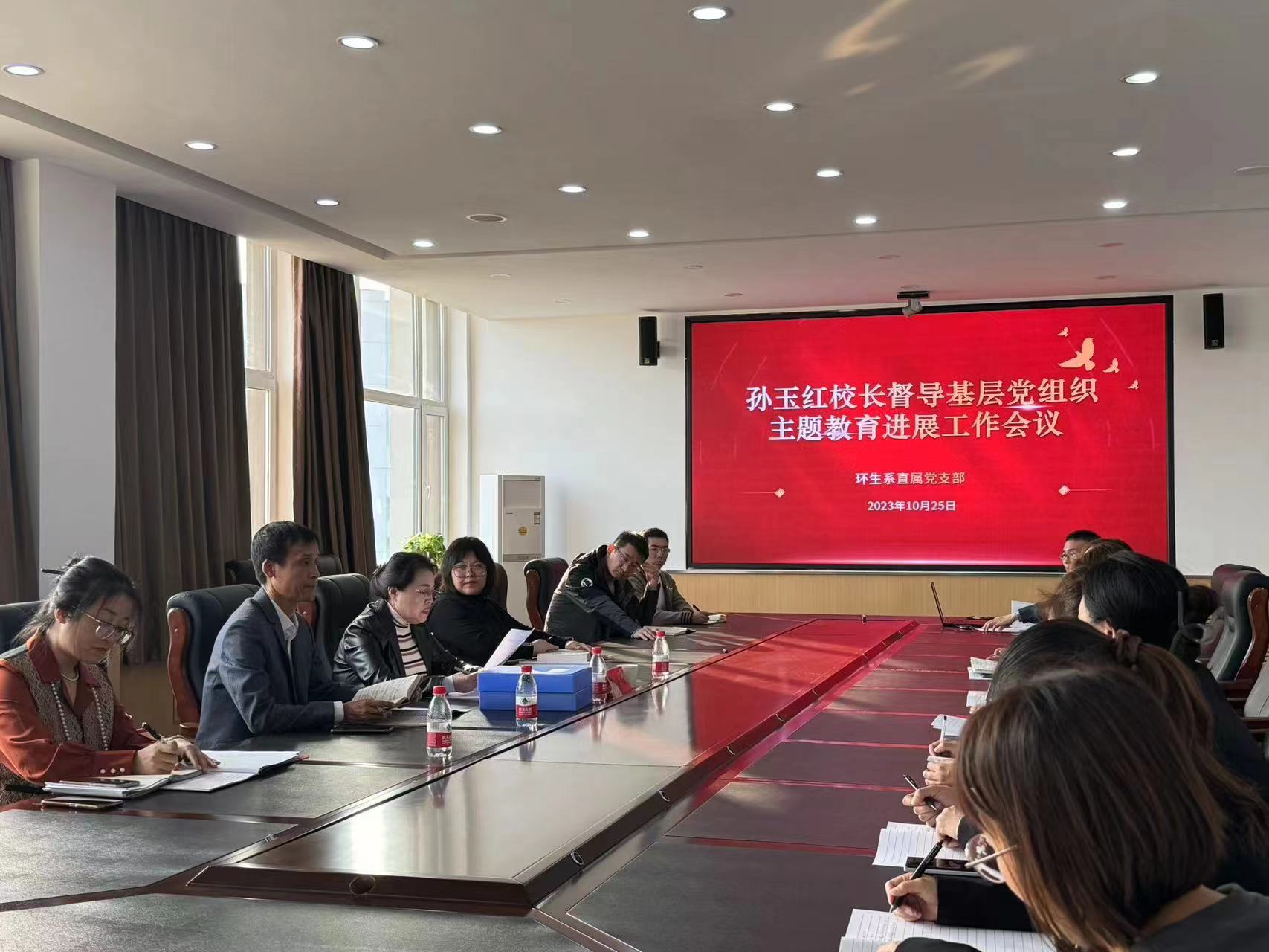 会上,孙玉红董事长通过边听边问的方式,就环境与生物工程系直属党支部主题教育工作提出指导意见,并查看了相关工作材料。