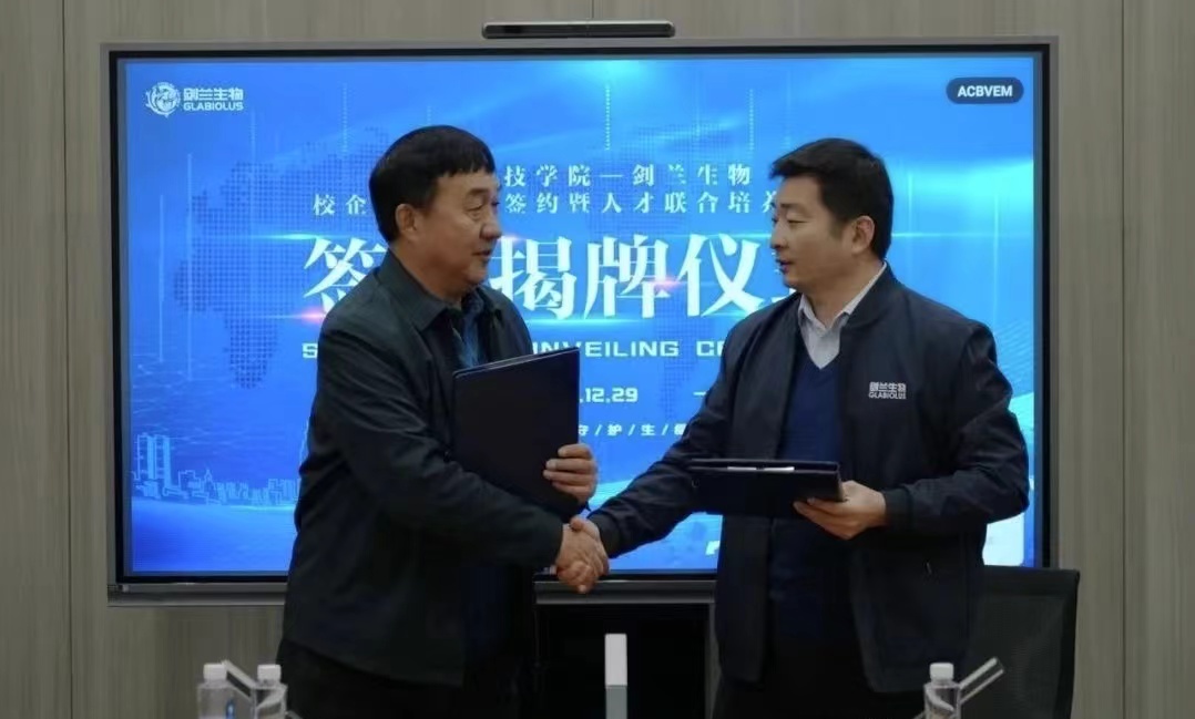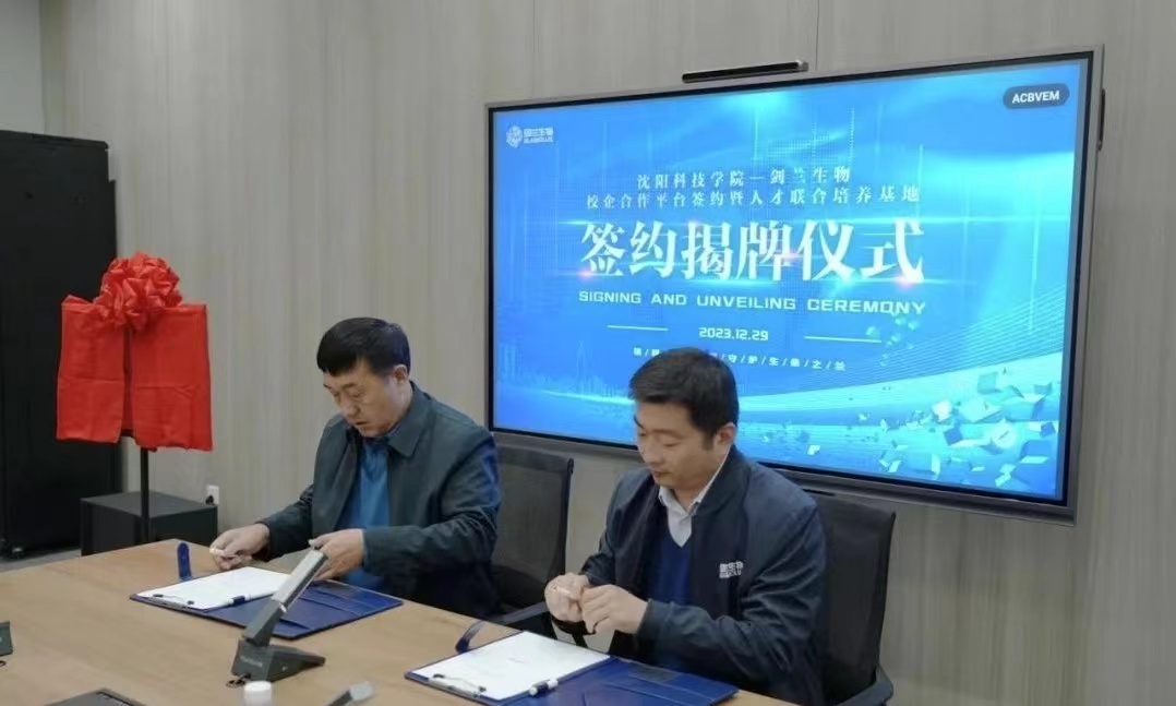 随后张秀峰总经理与王鸿鹏副董事长签订校企合作协议,并共同为永利yl23411—剑兰生物人才联合培养基地进行揭牌。